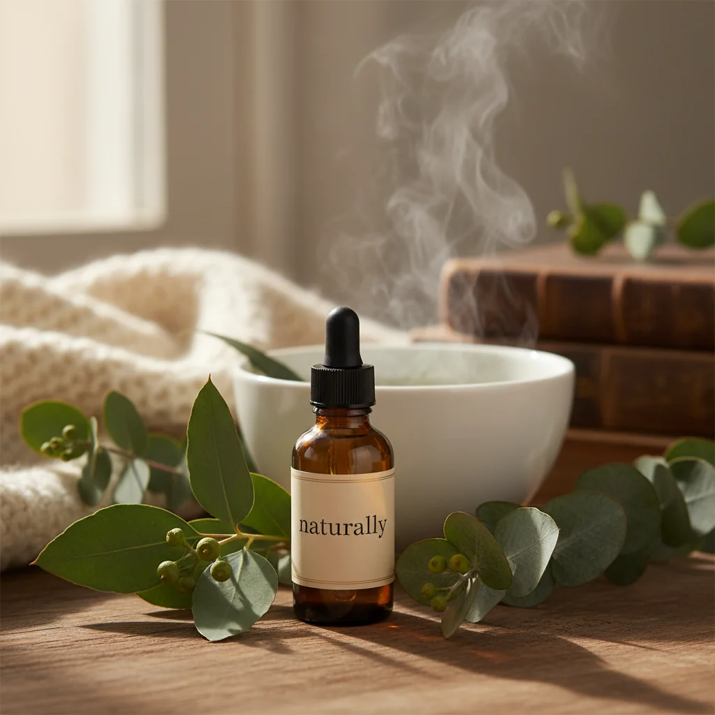 - Huile essentielle d’eucalyptus – L’eucalyptus est excellent pour décongestionner les voies respiratoires. Il peut être utilisé par inhalation ou ajouté à un bain chaud pour un effet apaisant. Il est important de noter que l’huile d’eucalyptus ne doit pas être utilisée chez les enfants de moins de 12 ans.